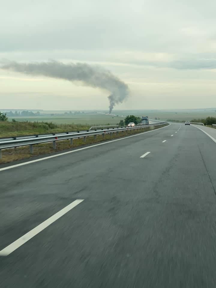 ОТ ПОСЛЕДНИТЕ МИНУТИ: Кола избухна в пламъци на автомагистрала "Тракия" (СНИМКИ)
