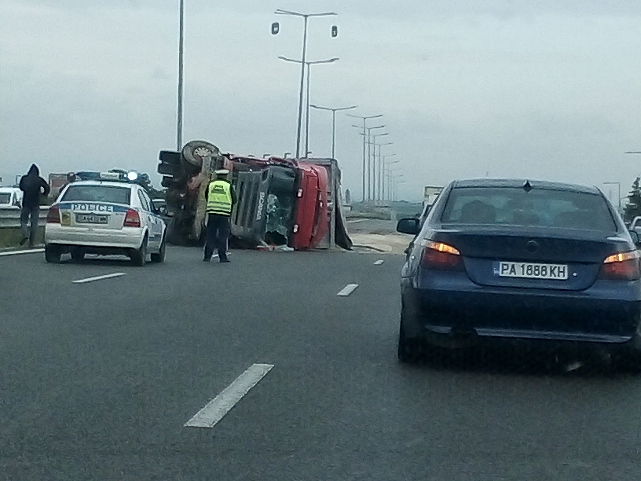 ОТ ПОСЛЕДНИТЕ МИНУТИ: ТИР се обърна на Северната тангента (СНИМКИ)