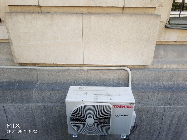 Във връзка с това беше взето решението за премахване на всички климатични тела от фасада на сградата и подмяна на съществуващите тръбни трасета. При подмяната не са пробивани нови дупки във фасадата.