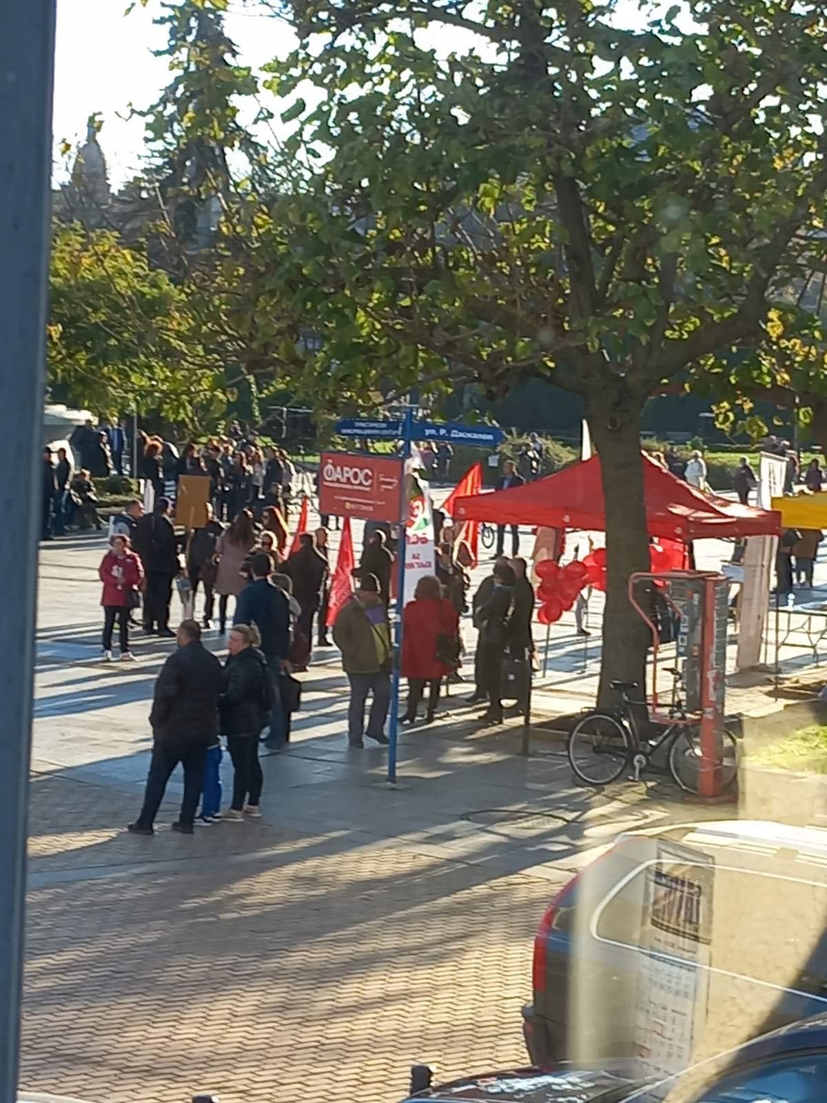 Повечето от дошлите на закриването на кампанията на Румен Радев обаче не са от града, а са докарани специално за днешното шествие.