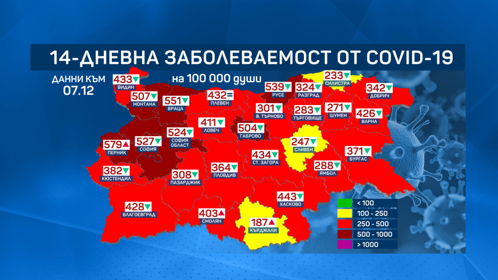 Още две области са в тази зона – Сливен и Кърджали, със заболеваемост съответно 233 и 187 на 100 000.