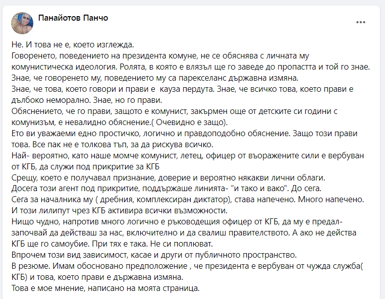 Панчо Панайотов: Ако президентът комуне не действа както му нареди началникът-лилипут, КГБ ще го самоубие