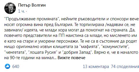 От фейсбука на Петър Волгин