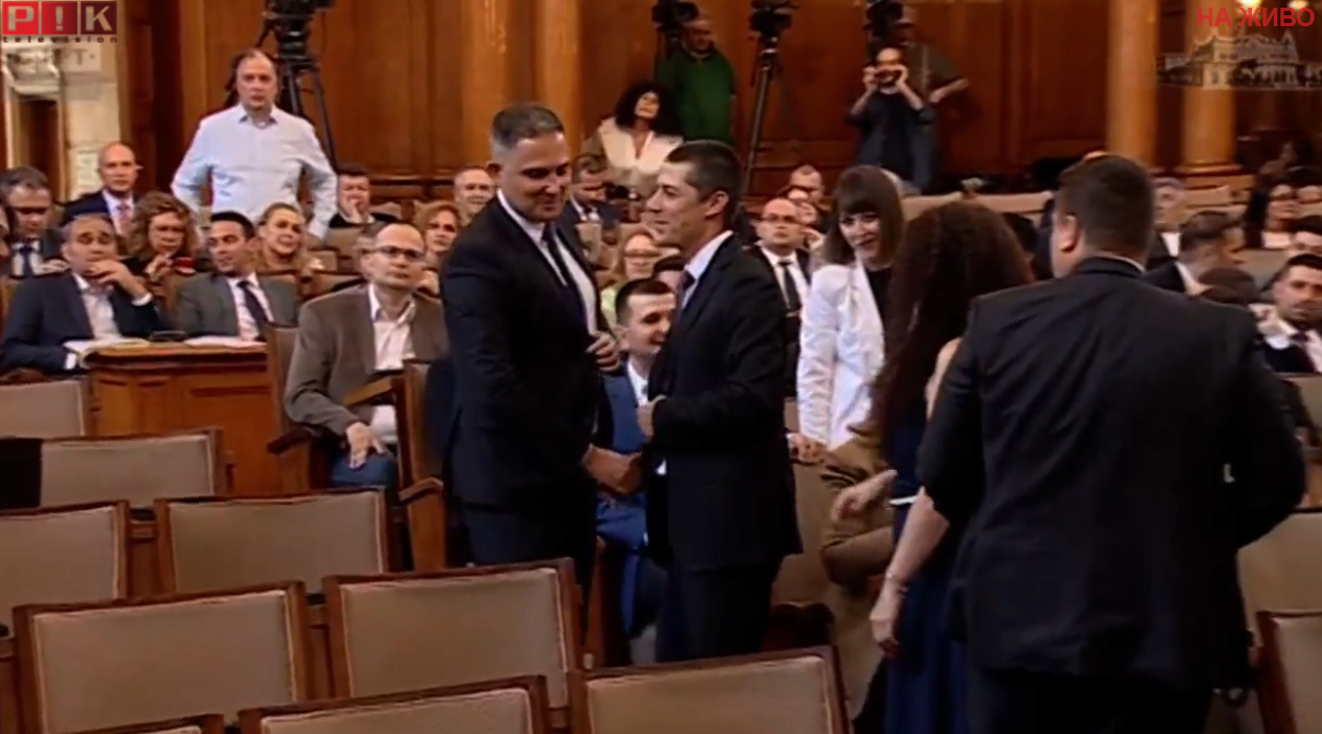 Гласувано бе освобождаването на депутата Петър Петров от ППДБ, а Кирил Петков се покачи на балкона, за да се види с ученички.