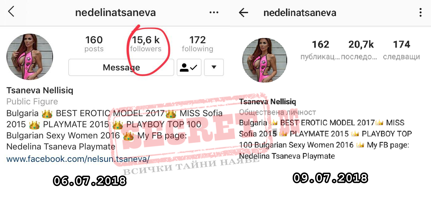 Плеймейтката Неделяна Цанева превъртя брояча на инстаграм с фалшивите си лайкове и последователи.