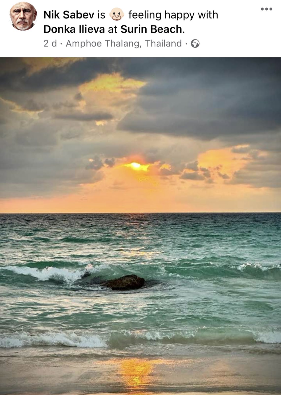 По същото време бившият спонсор на "Продължаваме промяната" е изпращал изгрева на един от най-популярните плажове на остров Пукет в Тайланд - Surin Beach.
