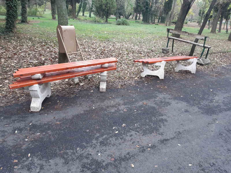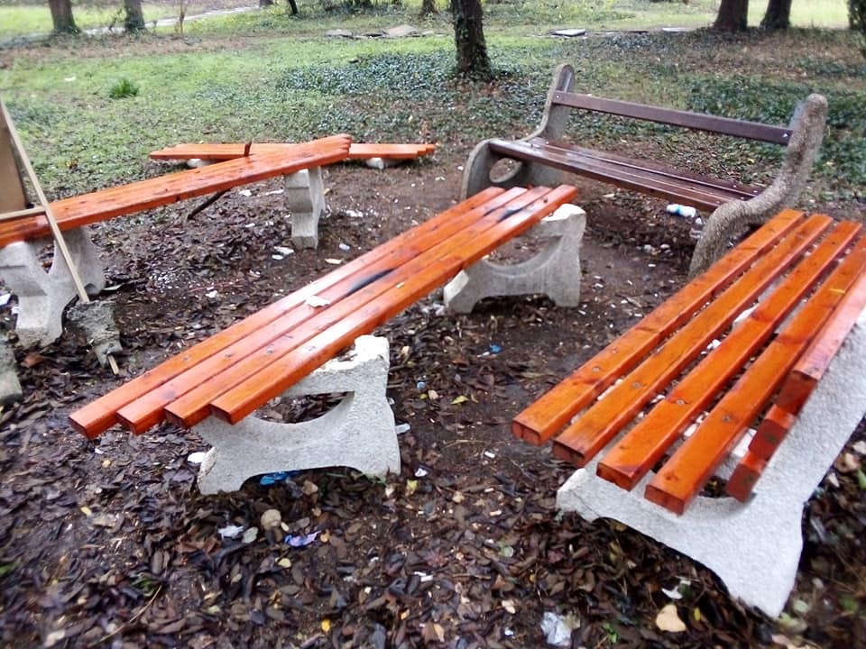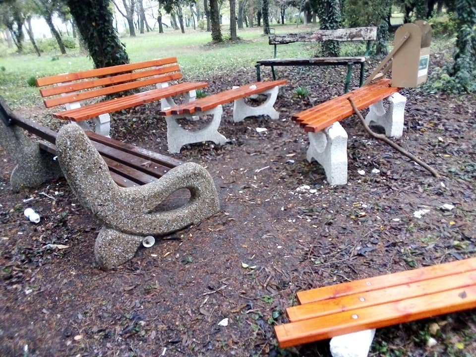 През уикенда неизвестни лица демонтираха от местата им и потрошиха няколко пейки в парк "Света Троица" край к-с "Славейков".
