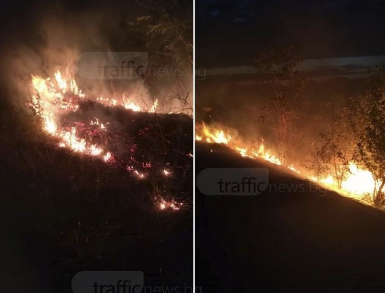 Пожар между Пловдив и Катуница. Няколо екипа се борят с пламъците (СНИМКА)