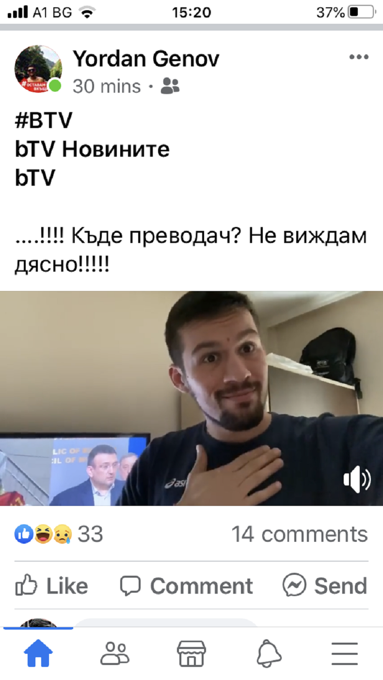 От Би Ти Ви обаче вчера скриха жестомимичната преводачка на последния брифинг в министерски съвет, който ПИК TV показа на живо. През цялото време на изявленията на министрите Ананиев и Маринов, както и на д-р Ангел Кунчев, на екраните на телевизията жестомимичният превод изобщо не се появи.