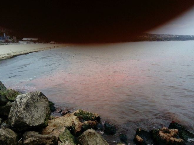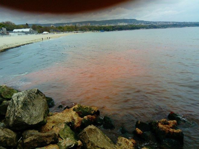 Нещо странно се случва с морето на Варна. "Петел" публикува снимки на свой читател, на които се вижда,че водата край вълнолома е почервеняла, става ясно,че се е появила и силна миризма.