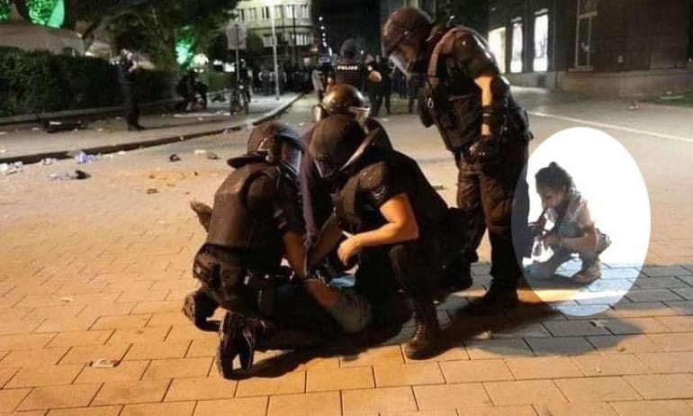 „Този кадър трябва да е на първите страници в световните медии...“, „Едно от лицата на ужаса, дете гледа ареста на баща си“ – гласи свободната интерпретация по снимката, споделяна от троловете, за да настройва хората срещу полицията.