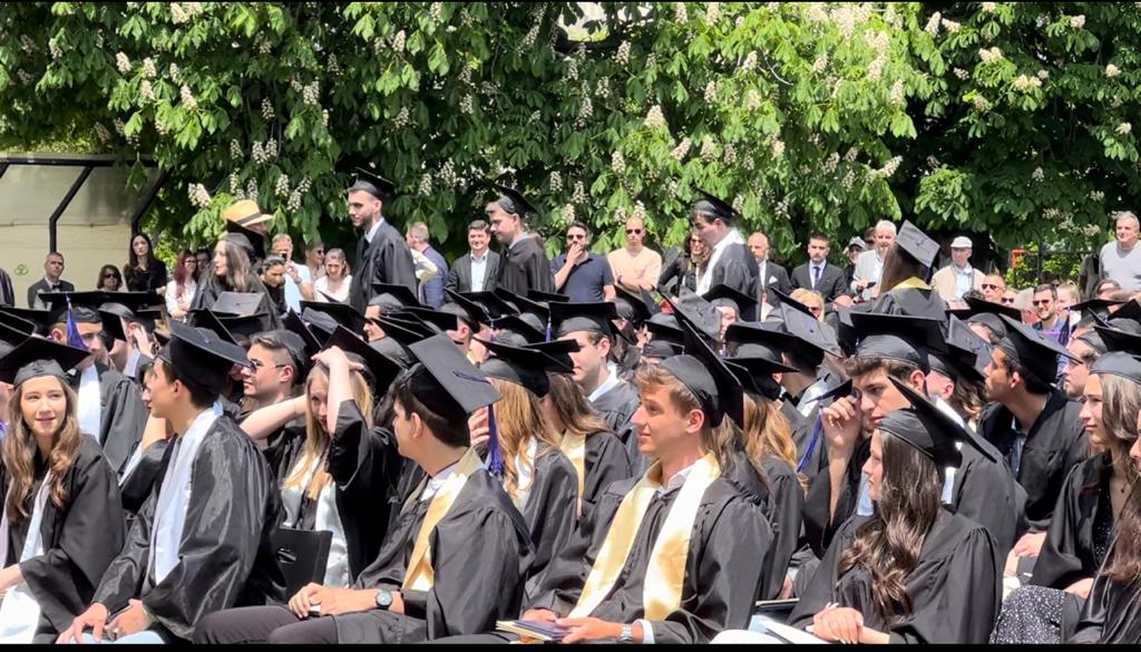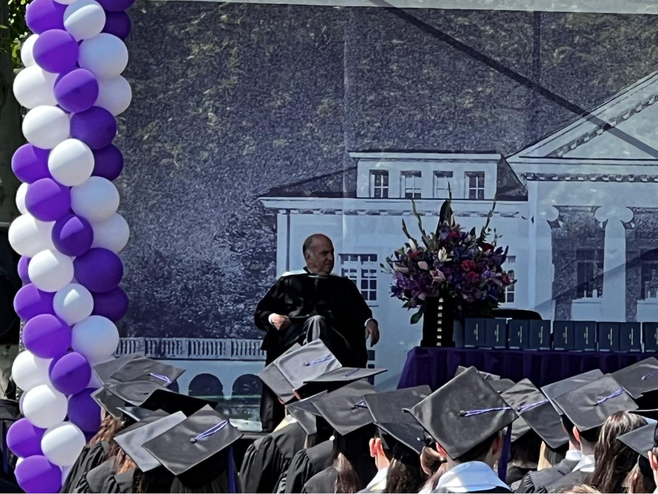 Новият щатски посланик Кенет Мертен изпрати зрелостниците на Американския колеж от випуск 2023 г. на церемония в градината на учебното заведение.