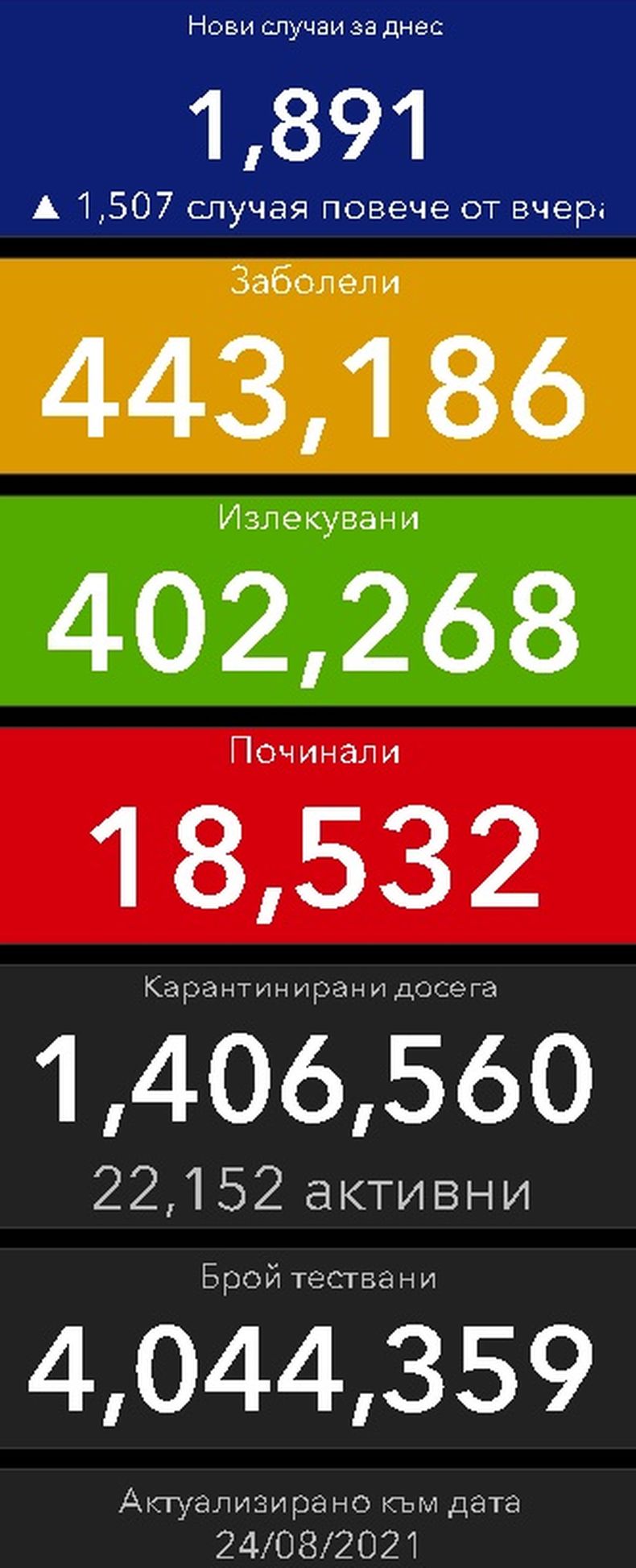 Според статистиката там новозаразените са 1 891 или с 1 507 случая повече от предното денонощие.