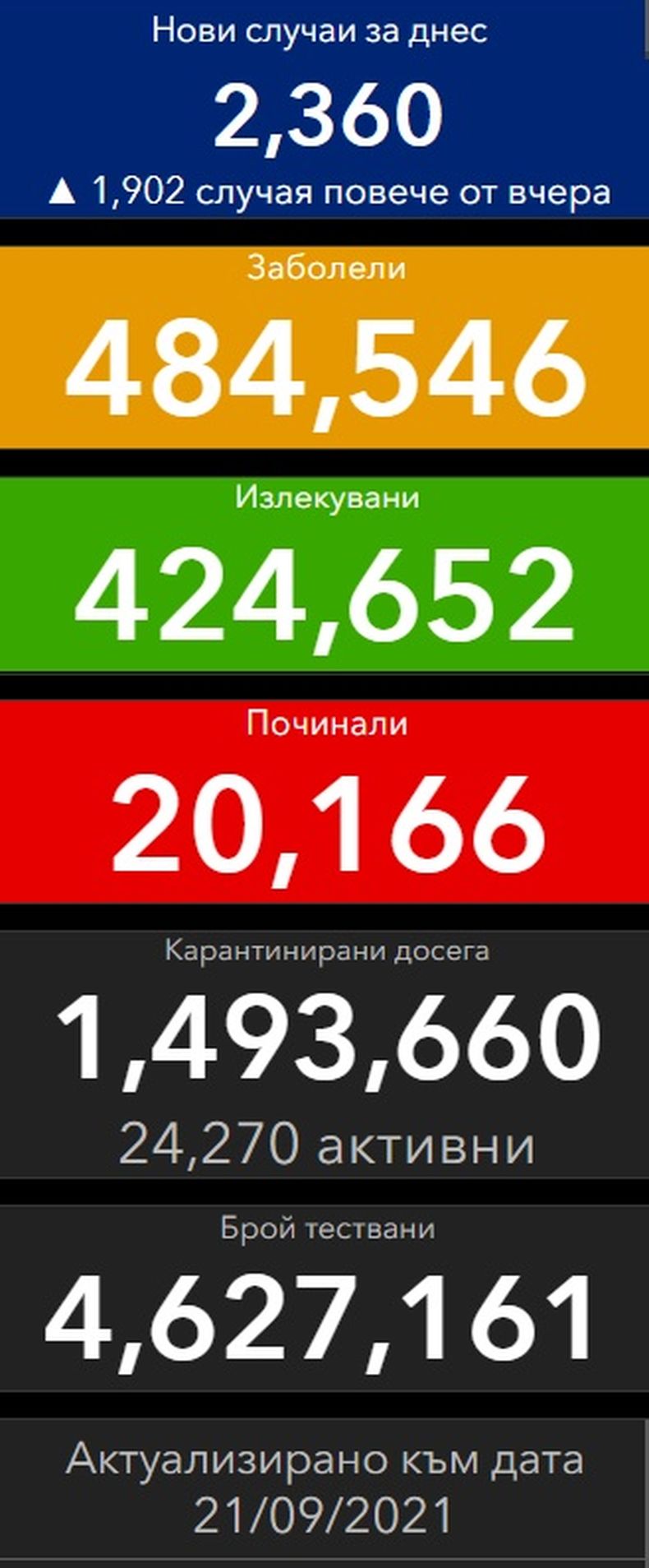 ПОСЛЕДНИ ДАННИ! 2 360 нови случая с коронавирус у нас. Починалите за денонощието са 138