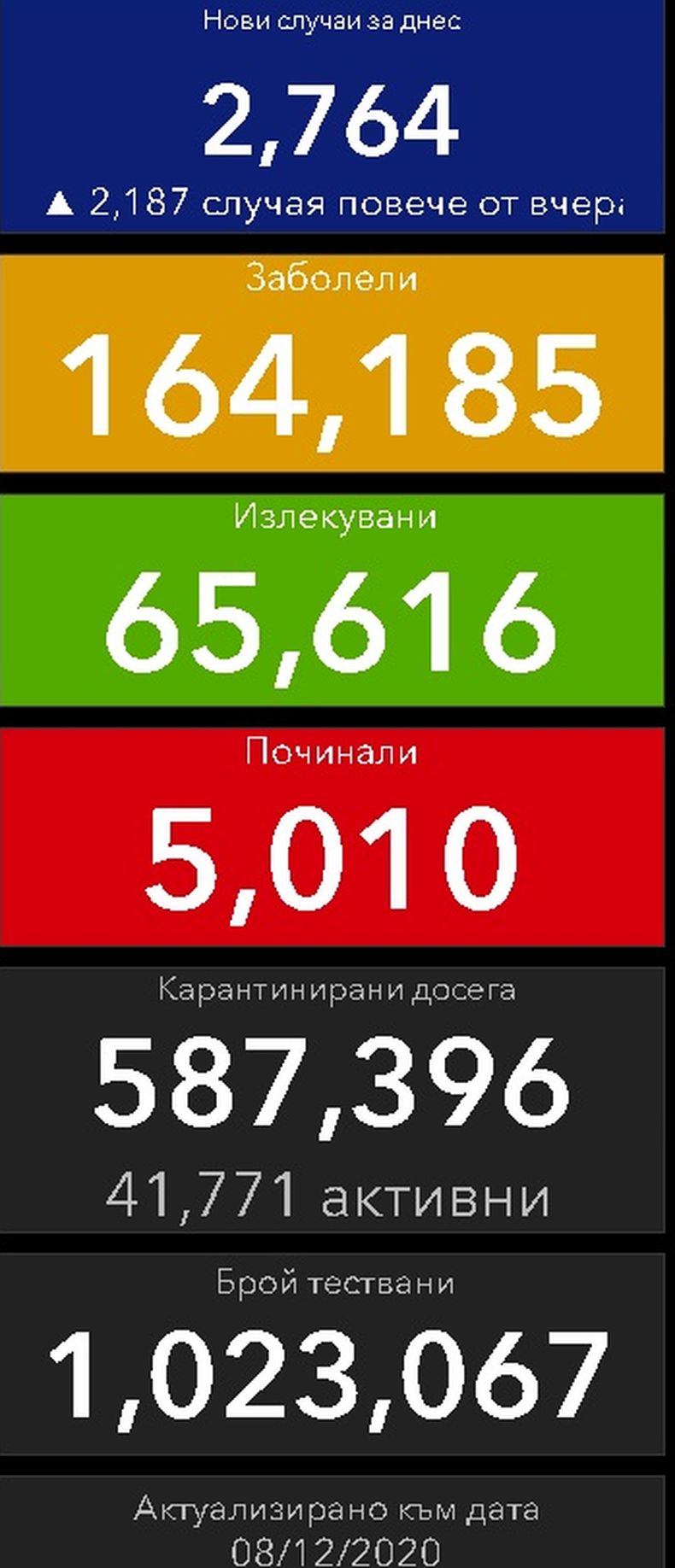 Според статистиката там новозаразените са 2 764 или с 2 187 повече от предния ден.