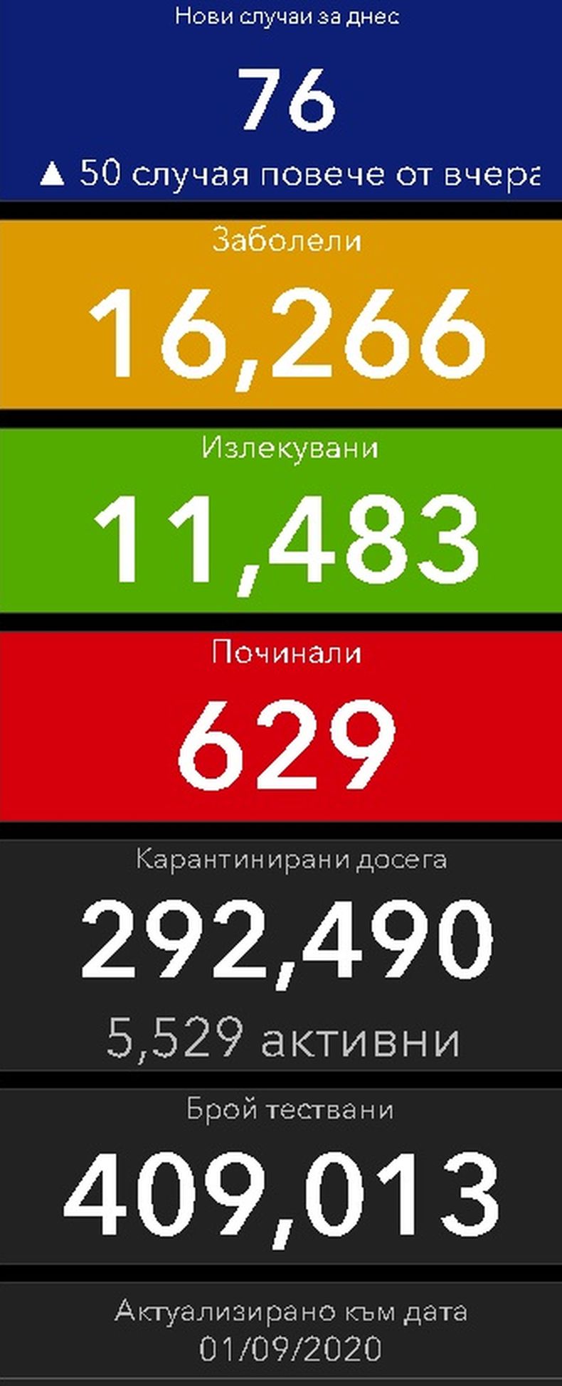 629 са починалите с коронавирус до момента в страната. 16 са новите случаи за деня.