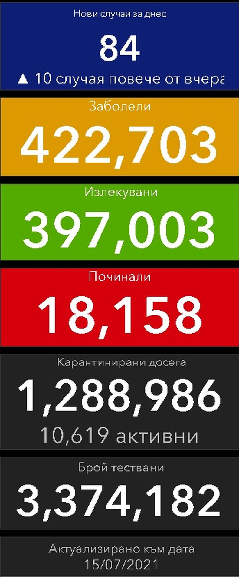 Според статистиката там новозаразените са 84 или с десет души повече от предното денонощие.