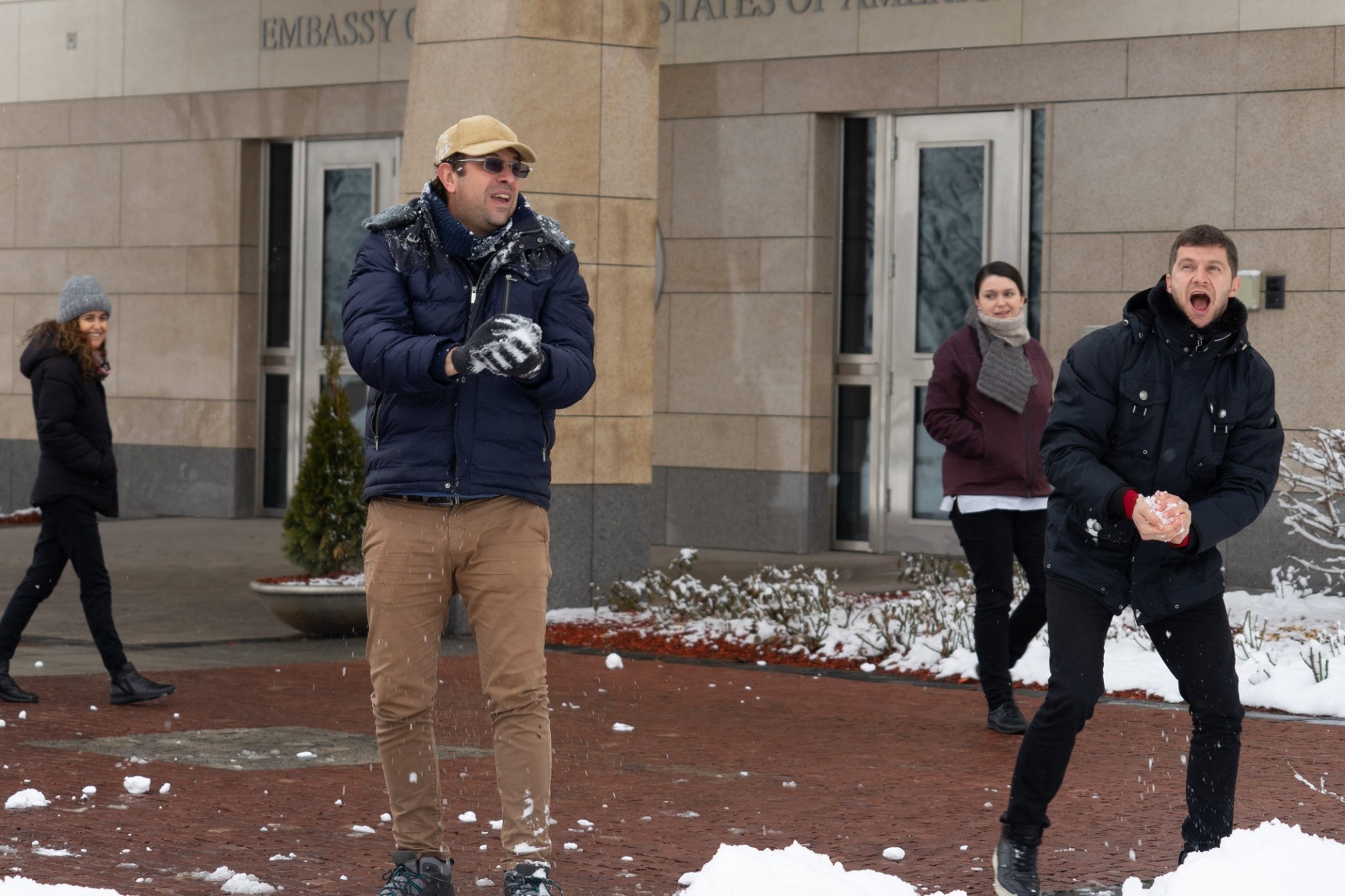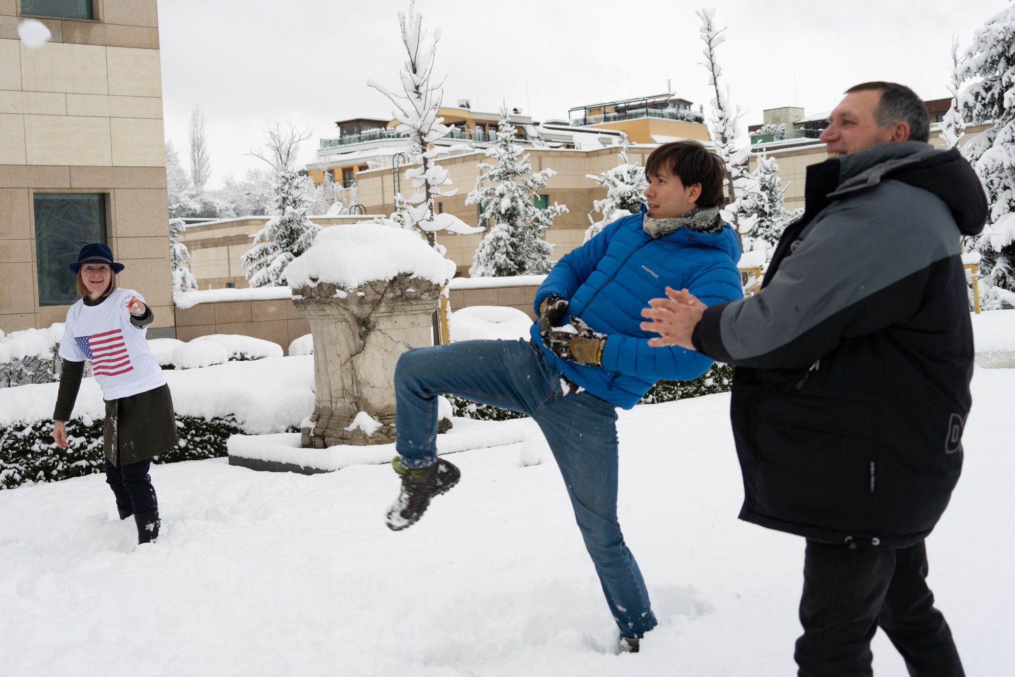 Посолството на САЩ у нас отпразнувало дългоочаквания снеговалеж с бой с топки (СНИМКИ)