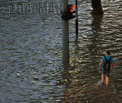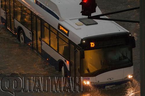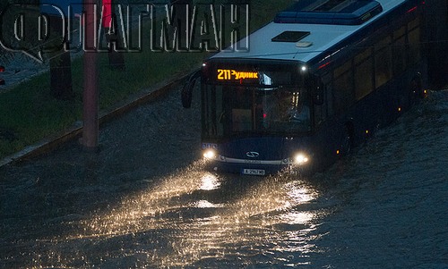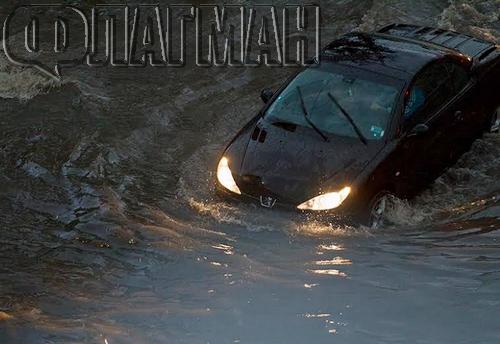 Потоп удари Бургас снощи. Централни улици, булеварди, приземни жилищни етажи и търговски площи бяха наводнени. Шахтите бяха се превърнали в гейзери.