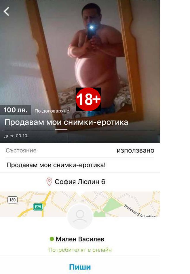 Уникална обява от известен онлайн базар събира лайк след лайк в социалните мрежи. Дали на шега, или пък съвсем сериозно, столичанинът Милен Василев реши да разтупти женските (а защо не и някои мъжки) сърца като пусне в продажба свои голи снимки.