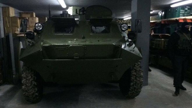 Киевската прокуратура съобщи за разкриването на голям подземен бункер, съдържащ огромен арсенал от оръжия и боеприпаси. Освен това, в укритието е имало и един БТР. Съобщението е публикувано на официалната страница на прокуратурата във Фейсбук, разказват от "Новини Лондон".