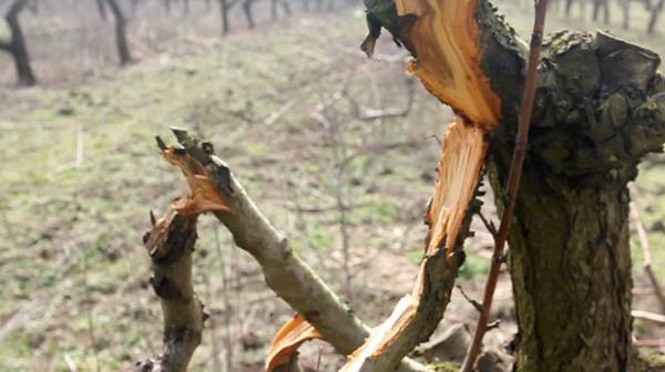 Вандали унищожиха общо 60 плодни дръвчета в овощната градина край кв. Рилци в Добрич. Собствениците на парцела за втори път стават жертва на такъв погром, пише dobrichonline.