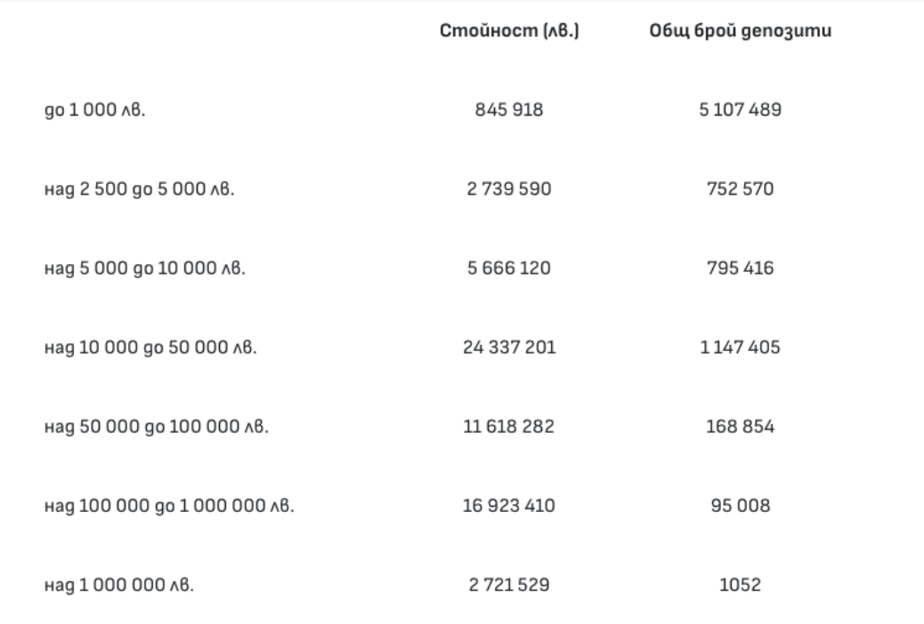 Реалността е такава, че 67 процента от всички депозити (6,1 млн. броя депозита) са в размер до 2500 лв.;