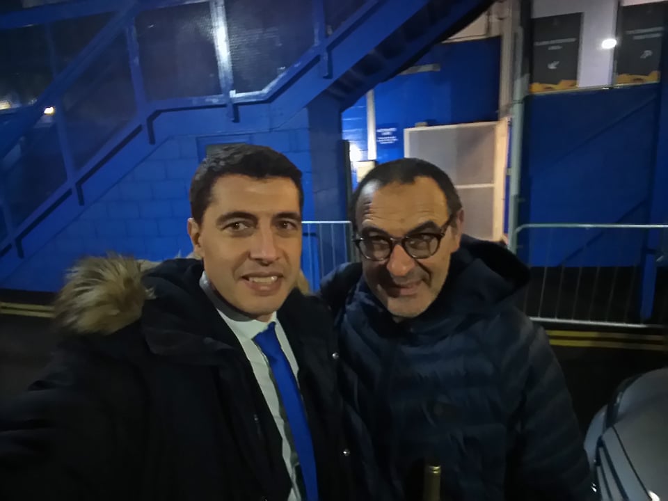 "Човекът в кадър" - Кирил Евтимов, който симпатизира на Челси, изгледа победата на лондончани с 3:0 на "Стамфорд Бридж" срещу Малмьо в двубой-реванш от 1/16-финалите на Лига Европа. "Сините" от Лондон продължават напред в надпреварата, а Кирил се срещна с мениджъра на тима Маурицио Сари и централния нападател Оливие Жиру.