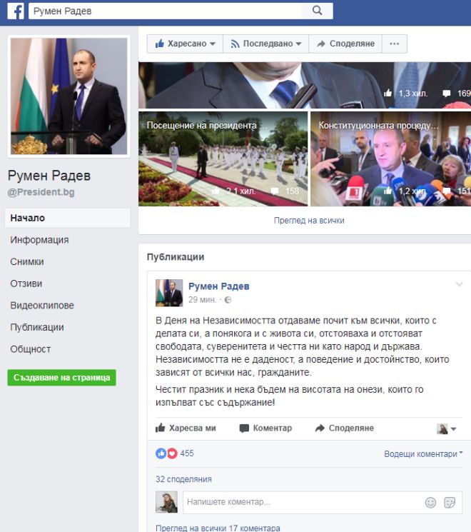Поздравление към българите за деня на Независимостта отправи от личната си страница във "Фейсбук" президентът Румен Радев. В момента държавният глава е в Ню Йорк и ще празнува с нашенците в американския град.