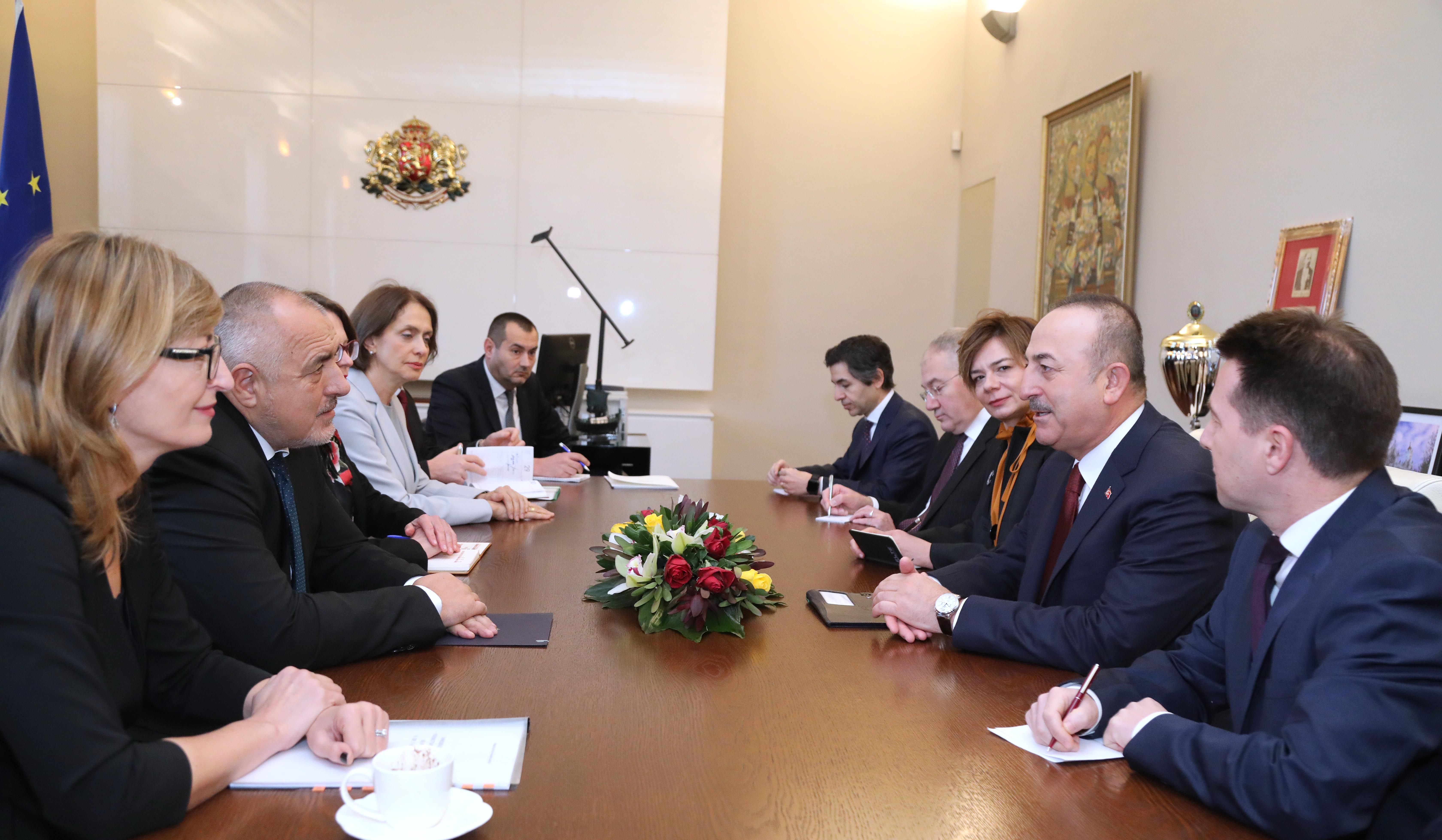 Стабилното и устойчиво развитие на двустранните отношения с Турция е важна част от българската външна политика, заяви министър-председателят Бойко Борисов по време на срещата си с министъра на външните работи на Република Турция Мевлют Чавушоглу. По време на разговора им в Министерския съвет премиерът Борисов отбеляза интензивния двустранен политически диалог, който българската и турската страна водят, съблюдавайки принципите на добросъседство и взаимно уважение. Според българския министър-председател настоящата му среща с Чавушоглу, предхождана от разговора им в Давос, както и срещата му с турския президент Реджеп Тайип Ердоган при откриването на „Турски поток“ в Истанбул са добра възможност да бъде затвърдена положителната атмосфера в отношенията между двете страни.