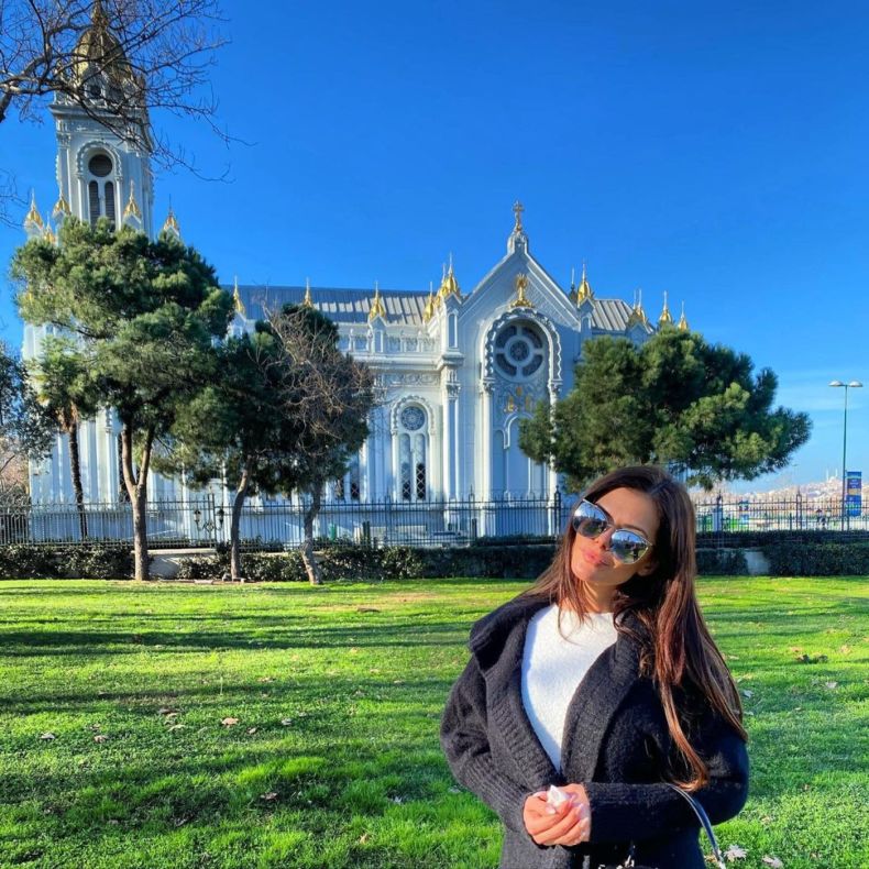 Певицата не пропусна да запечата кадър и пред българската църква "Свети Стефан" - единствената православна желязна църква, а всички очакват с нетърпение новите публикации на любимата си изпълнителка в мрежата.