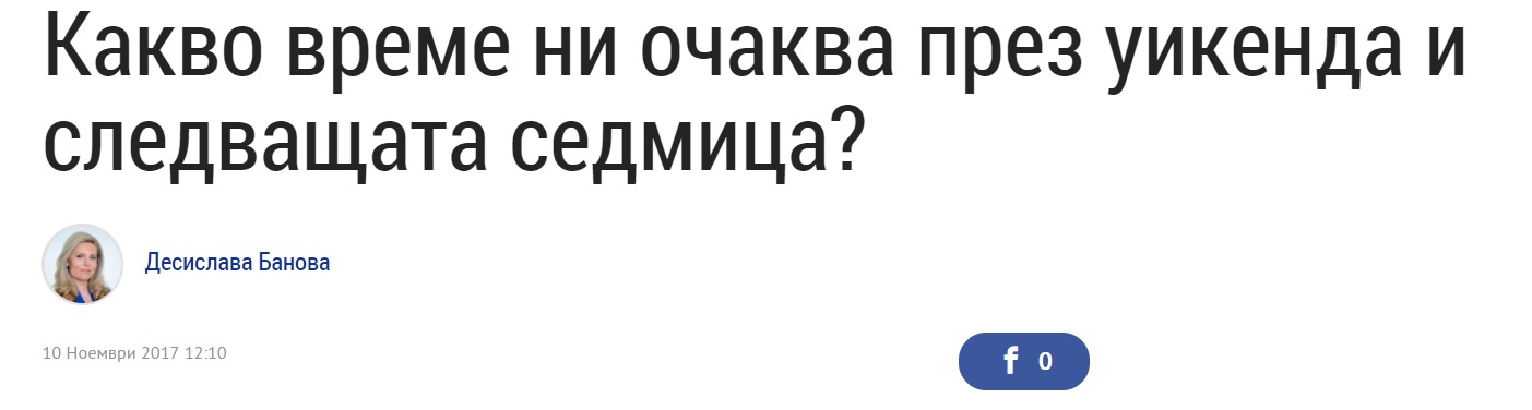 До края на деня облачността в много райони от страната ще намалява до предимно слънчево време. Ще продължи да духа слаб вятър от запад-северозапад. Максималните температури днес ще са предимно между 10° и 15°, в Сандански - малко по-високи до 16 градуса. Това съобщи синоптичката на Нова Деси Банова, която стана още по-прочута покрай любовната си връзка с предходния президент Росен Плевнелиев.