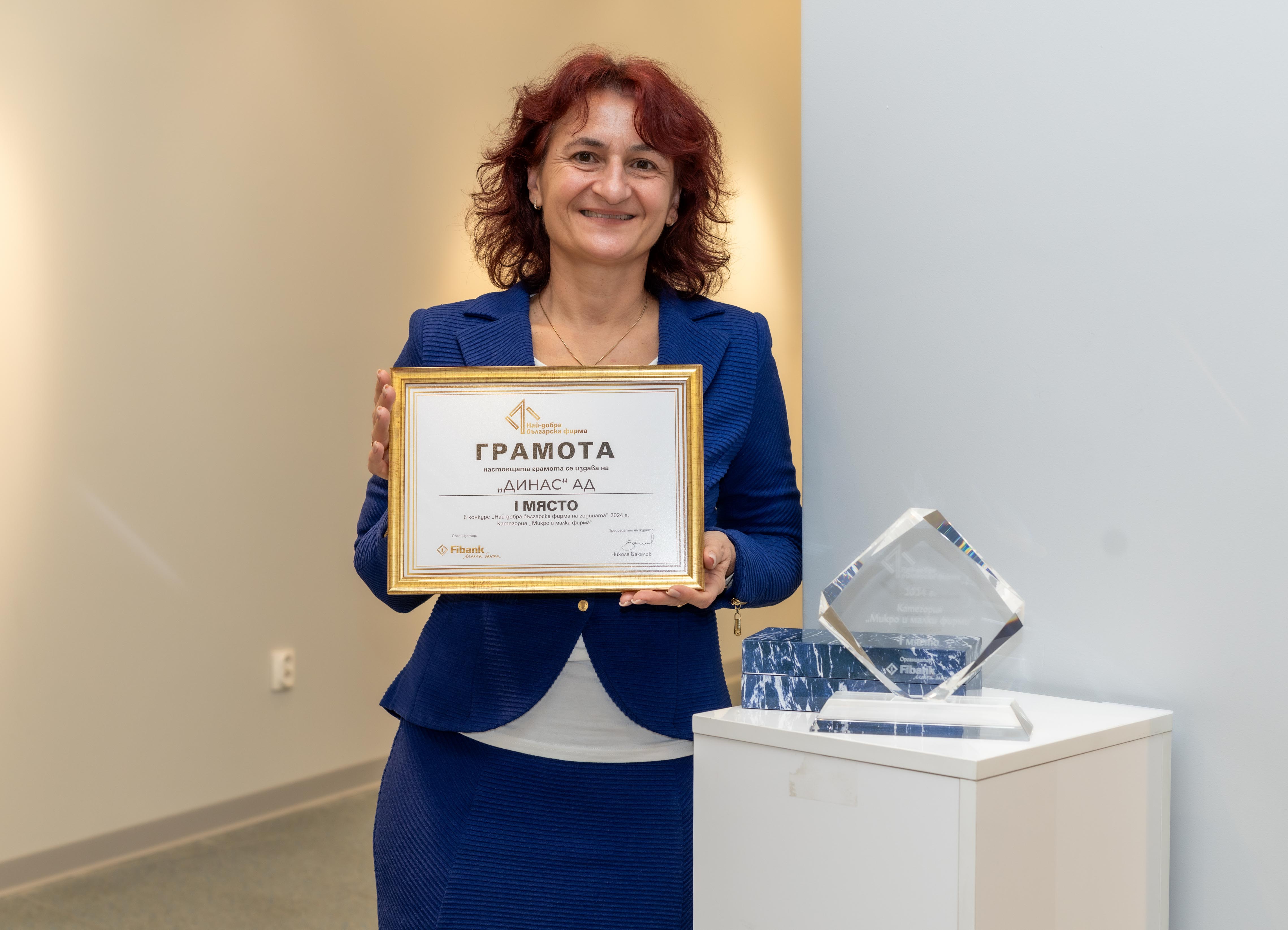 Победител в категорията „Микро и малка фирма“ стана Динас АД – сливенска компания за добив и преработка на рядката суровина кварцит, ползвана за огнеупорни материали в строителството и леярството. Нейни подгласници са варненското дружество 4М Енерджи ООД, специализирано в проектирането, изграждането и поддръжката на електрически уредби и съоръжения, и Глобал Тубер – фирма от Търговище, която се занимава с изкупуване и преработка на трюфели, диворастящи гъби и горски плодове.