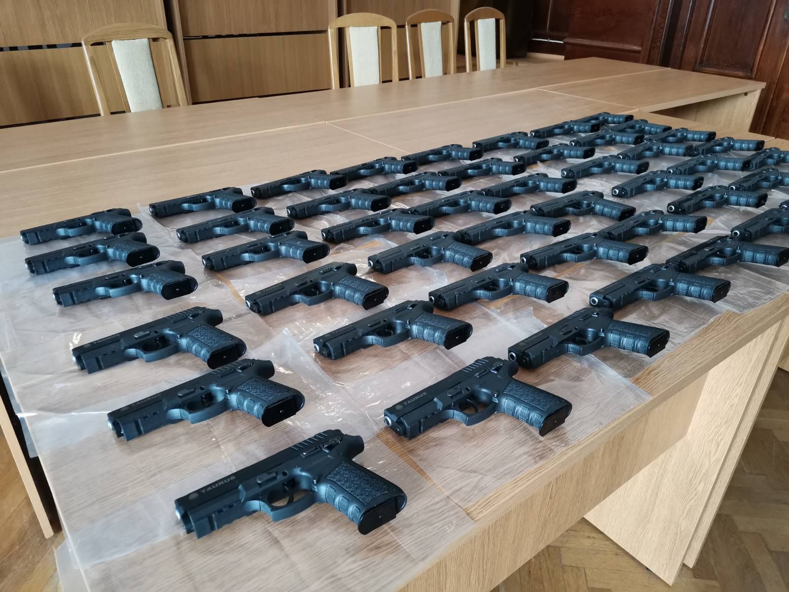 Районна прокуратура-Кърджали наблюдава досъдебно производство за това, че в периода от 05.03.2022 г. до 11.03.2022 г. в гр. Кърджали са държани и предадени другиму огнестрелни оръжия - 49 броя пистолети с идентични марка и фабричен номер - марка „TAURUS", за боеприпас 9х19 мм и с пълнители без боеприпаси, но с един и същ номер, без надлежно разрешение по Закона за оръжията, боеприпасите, взривните вещества и пиротехническите изделия.
