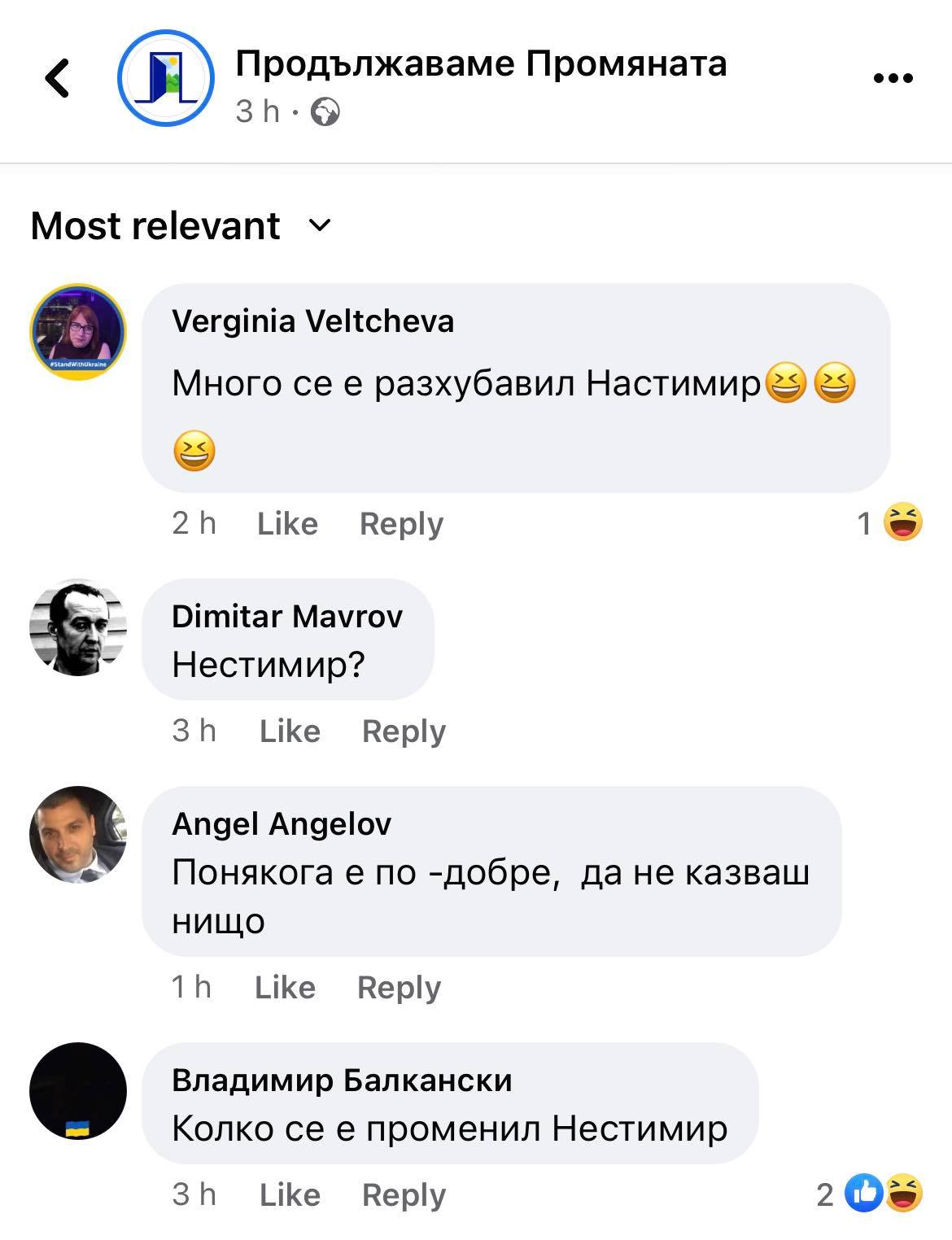 Това предизвика бурна реакция от подигравки. "Много се е разхубавил Настимир", "Понякога е по-добре да не казваш нищо" написаха потребители в мрежата.