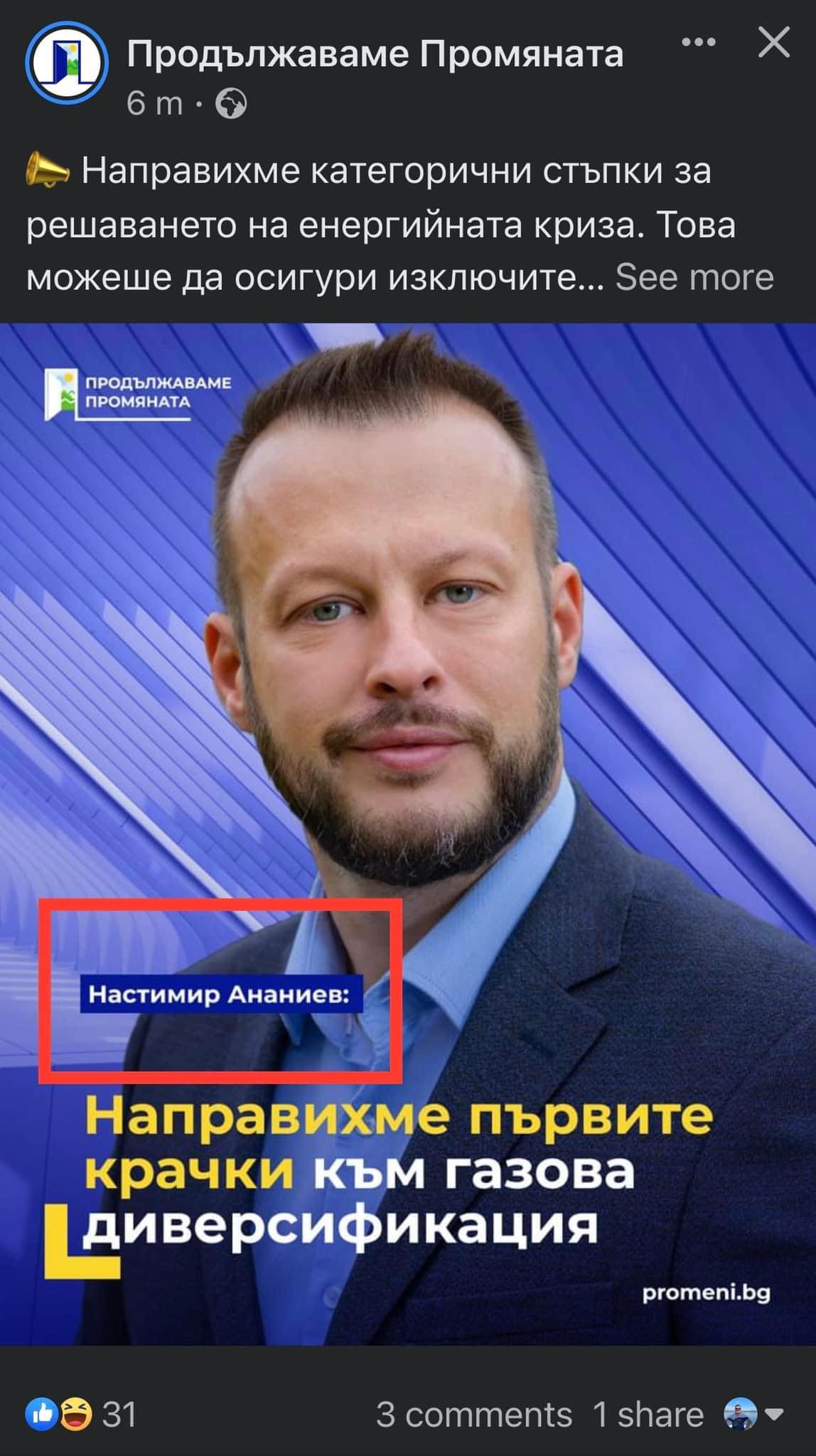 Поредна излагация демонстрираха от Промяната. Във "Фейсбук" те публикуваха снимка на Йордан Терзийски с надпис, че това е Настимир Ананиев.
