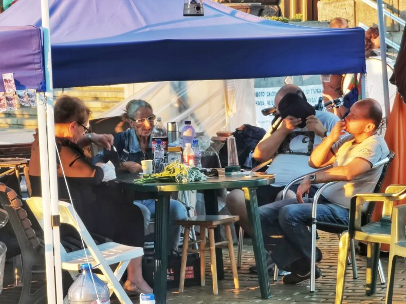 Дори и редиците на дежурните протестъри оредяха, очевидно отегчени от нищоправенето. Сред тях обаче бе бащата на фалшивите новини Арман Бабикян от "Отровното трио", съратникът му от триото - Николай Хаджигенов, също бе налице.
