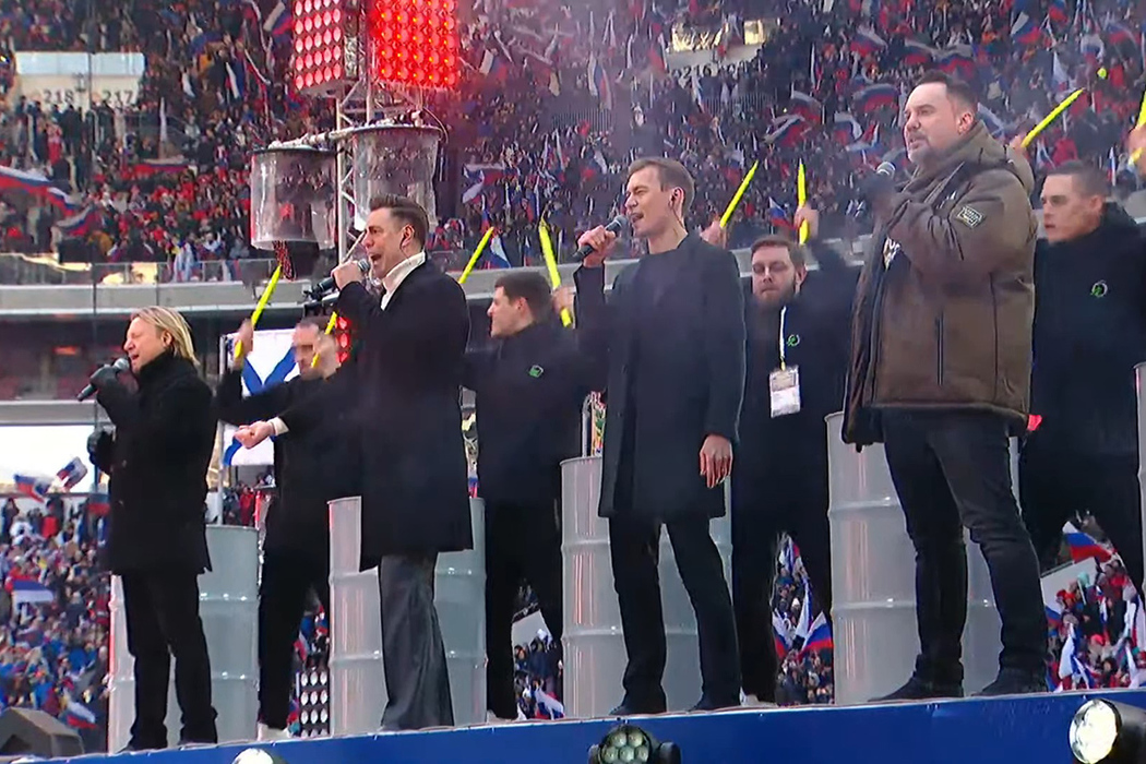 "Руските воини се бият в Украйна героично, мъжествено и храбро. Русия се гордее с тях. Цяла Русия ги подкрепя и всеки, който ги подкрепя, също е защитник на Русия. Днес Русия се бие в Украйна за свои "исторически земи", изтъкна в словото си на концерта Путин.