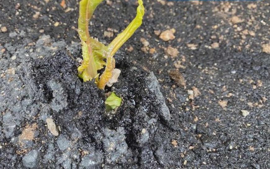 "Предлагам разсад, отгледан в чисто нов асфалт, който беше положен няколко дни преди Коледа в квартал "Дренов". Разкъртиха настилките пред къщите на хората и положиха нещо, което е още меко и през него може да пробие дори крехък корен", гласи коментарът към снимките.