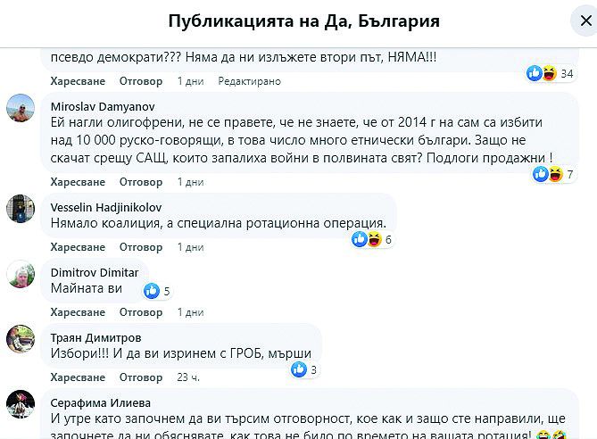 Следват гневни публикации на симпатизанти и членове, които призовават Христо Иванов и Атанас Атанасов да подават оставки от председателските постове, а в интернет гърми от доскорошни изказвания и на двамата, в които от ДБ критикуват ГЕРБ за нестабилността, корупцията и как Бойко Борисов трябва да бъде държан далеч от властта.