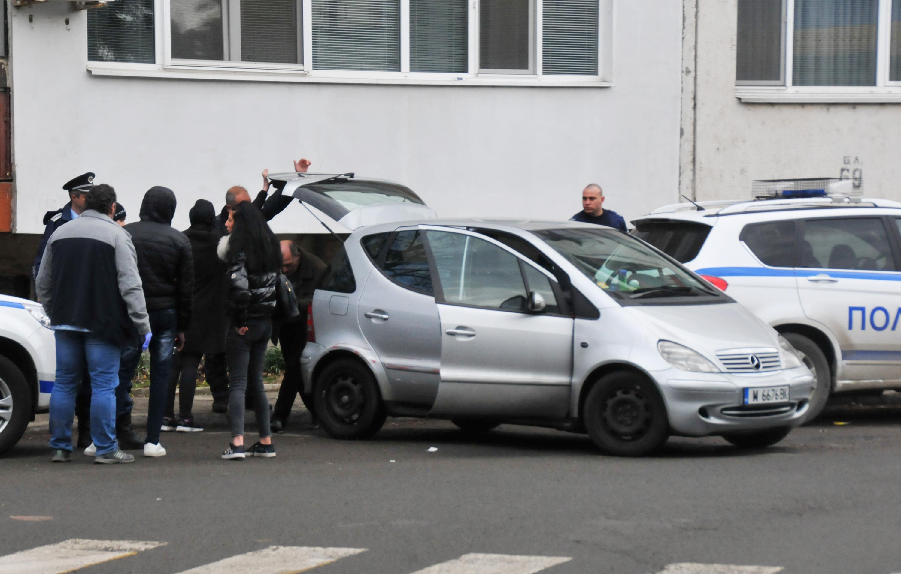 Преди минути от една от патрулките, конвоирана от полицаи, излезе млада дама, която криеше лицето си. Тя очевидно е собственик на автомобила.