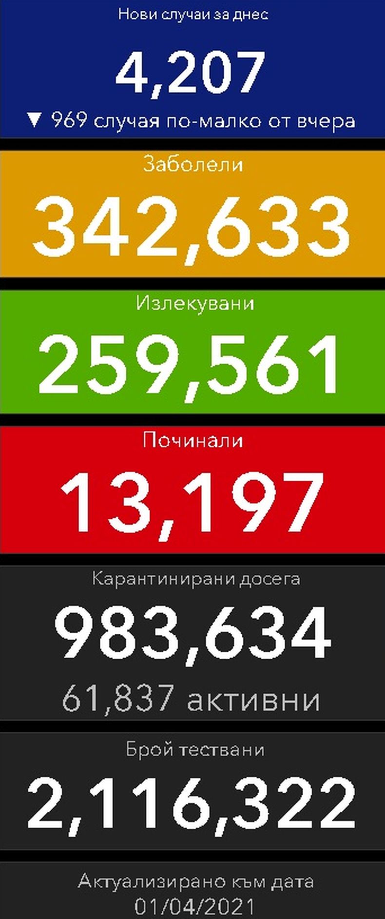 ПЪРВО В ПИК! 4 207 нови случая на COVID-19 у нас. Починалите за денонощието са 129