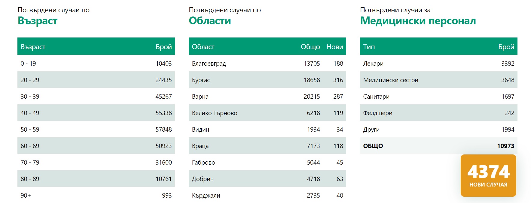 ПЪРВО В ПИК: 4374 новозаразени с коронавирус, излекуваните са 1757 (ТАБЛИЦИ)