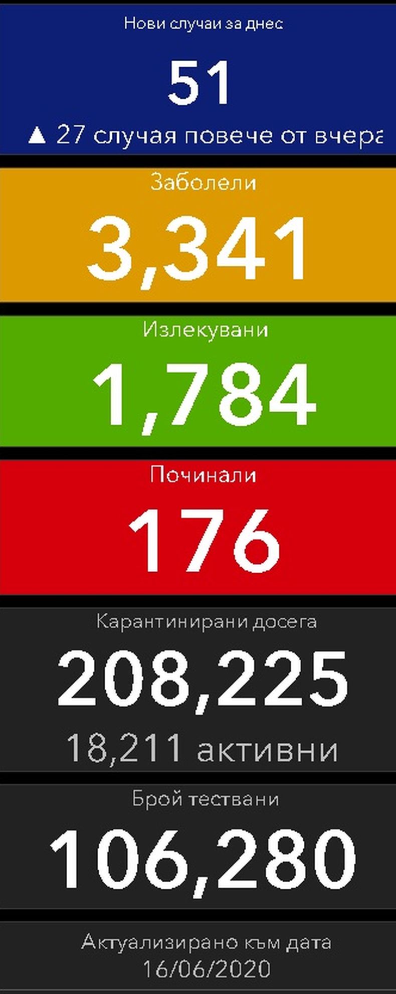 Според статистиката там новозаразените са 51. Изследвани са общо 1 794 проби за денонощието.