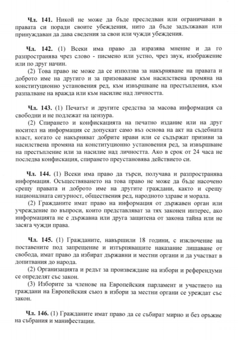 Документът е изпратен до председателите на всички парламентарни групи в 44-тото Народно събрание и депутатите, нечленуващи в парламентарни групи.