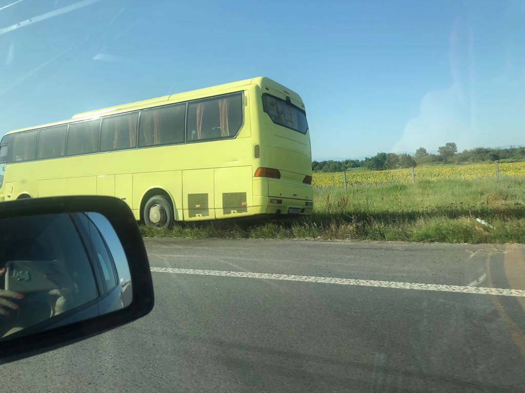 Автобус със софийска регистрация е излязъл от пътя и се е забил в мантинелата на автомагистрала "Тракия" преди минути, видя човек на ПИК. Жълтото возило е напуснало пътното платно край Пловдив, в посока София.