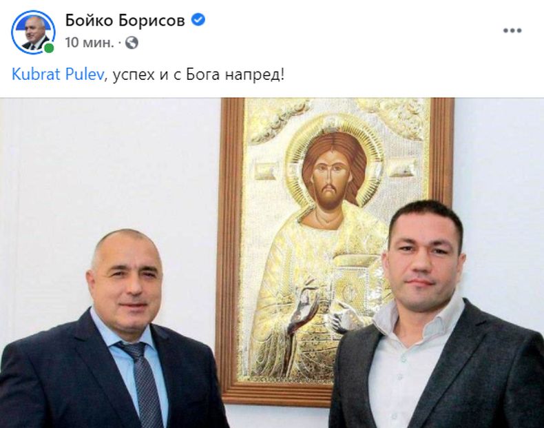 Премиерът Бойко Борисов вдъхна кураж на най-добрия ни боксьор Кубрат Пулев часове преди да излезе на ринга. "Кубрат Пулев, успех и с Бога напред", написа премиерът във фейсбук.