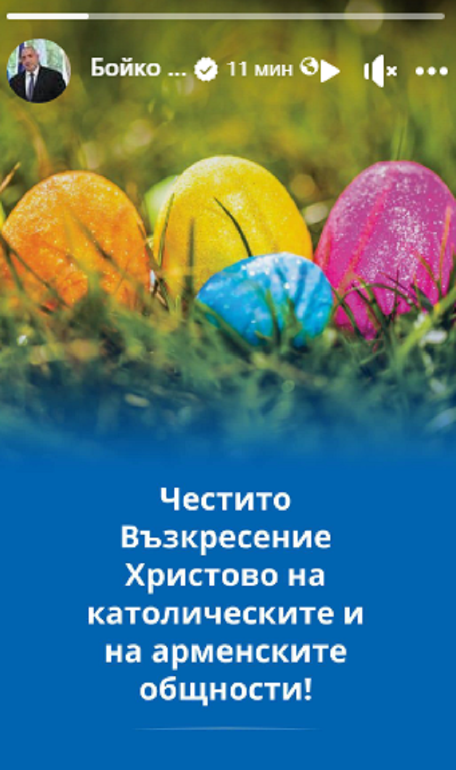 “Честито Възкресение Христово на всички приятели арменци и католици!“, написа във Фейсбук лидерът на ГЕРБ Бойко Борисов.