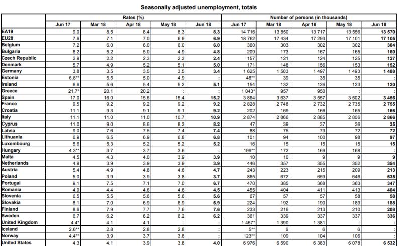 През месец юни безработицата в България достигна 4,8%, което е сериозно понижение спрямо юни 2017 г., когато е била 6,2%. Нивото на младежката безработица в страната също е спаднало до 10,9% спрямо 14,2% година по-рано. Това написа премиерът Бойко Борисов във Фейсбук, по повод последното проучване от ЕС за равнището на безработицата.