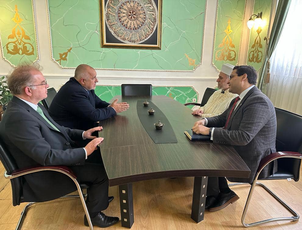 Лидерът на ГЕРБ Бойко Борисов проведе днес среща с главния мюфтия Мустафа Алиш Хаджи. На нея присъстваха още главният секретар на мюфтийството Джелал Фаик и Радомир Чолаков.